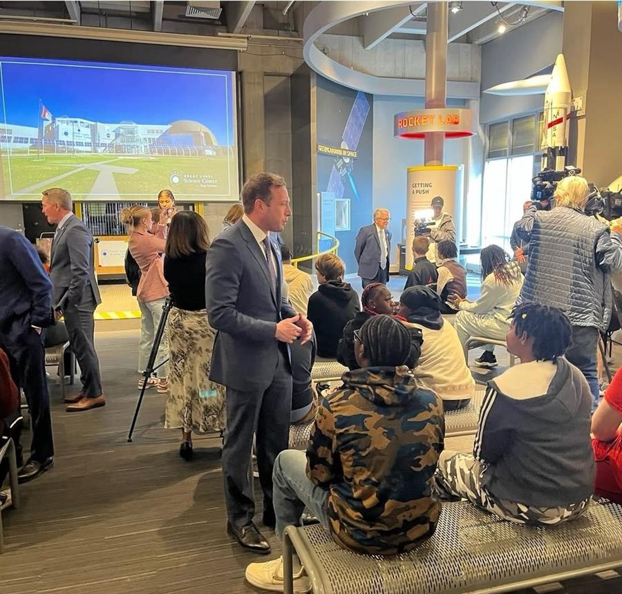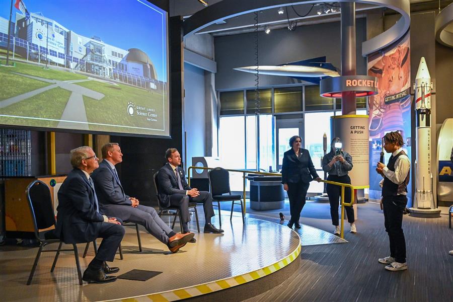 Mc2STEM students had the incredible opportunity to participate in a major press event in partnership with the Great Lakes Science Center where they met with Governor DeWine, Lt. Governor Husted, and Congressman Max Miller to discuss NASA Glenn becoming the World Headquarters for all of NASA. 🌍