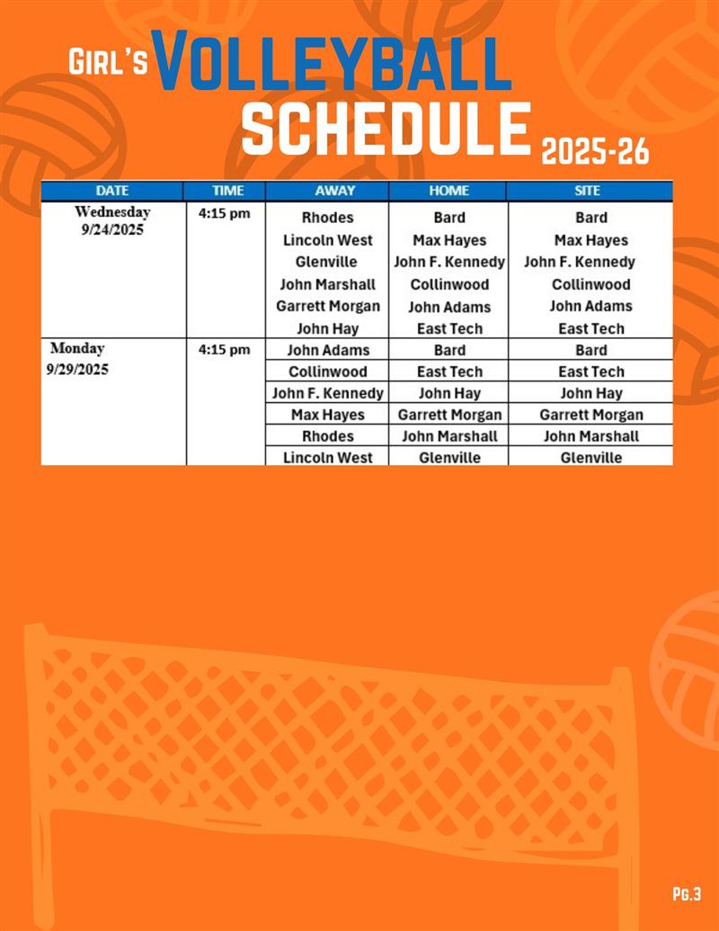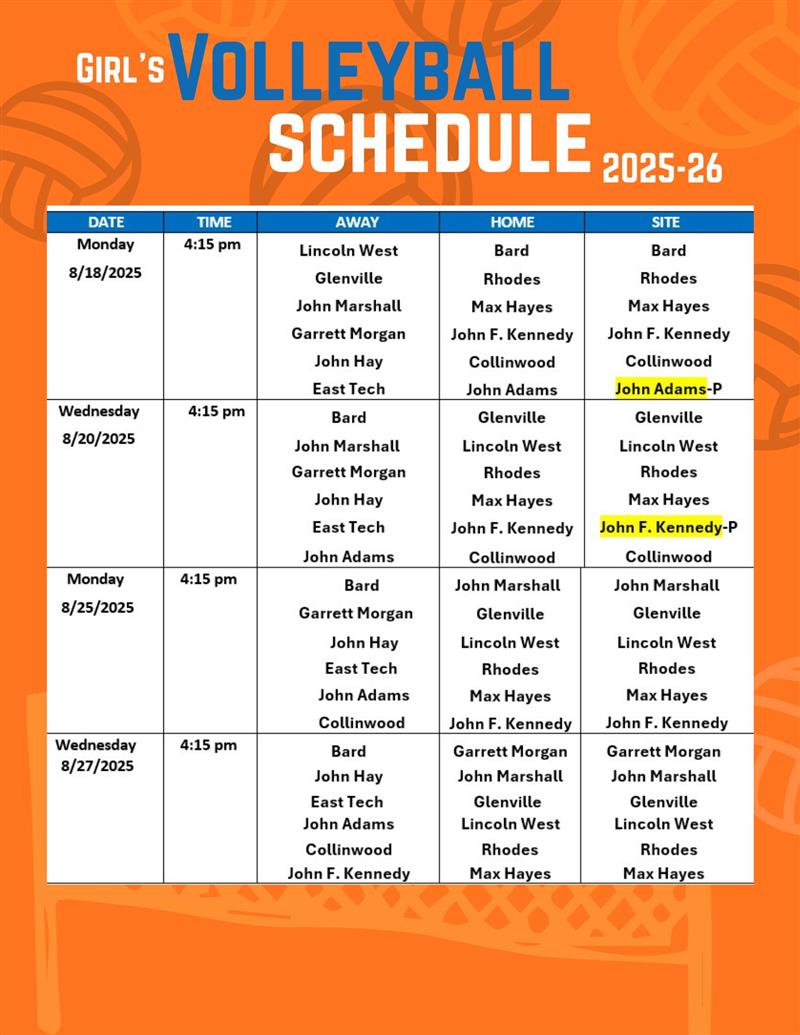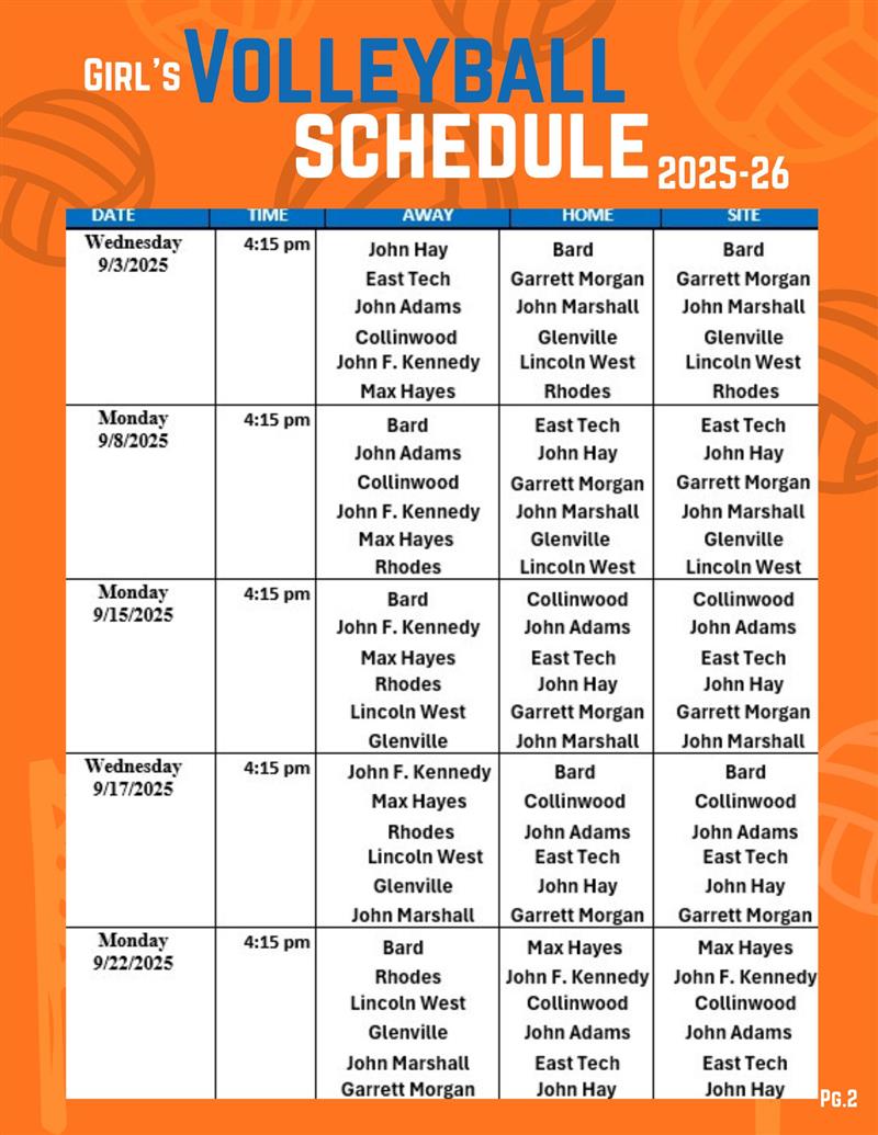 2025 Girls Volleyball Schedule